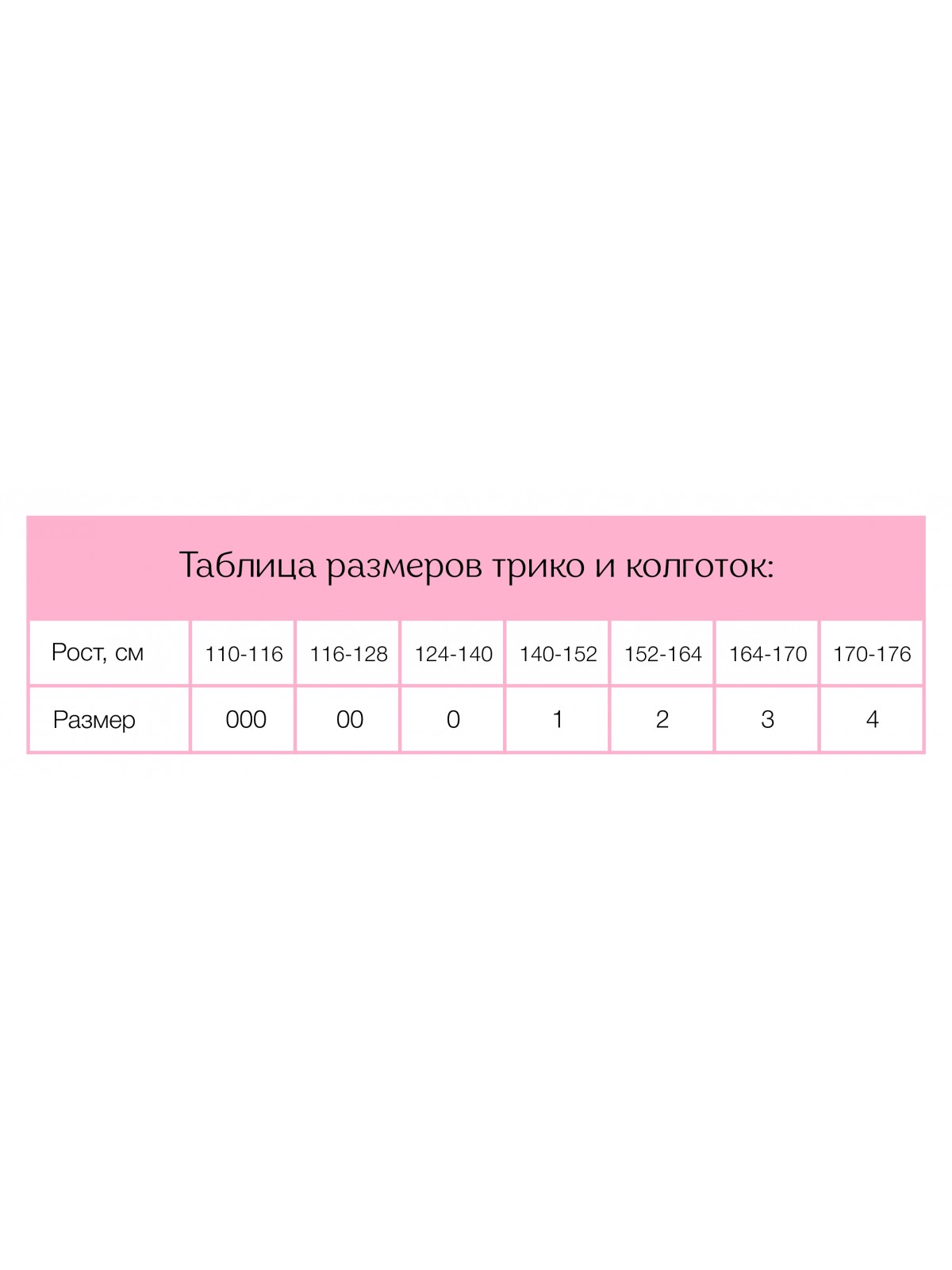 Таблица размеров: