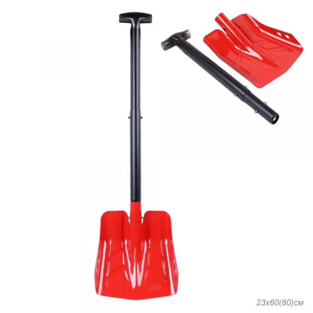 Лопата лавинная алюминиевая ИРЕМЕЛЬ СНЕГОВИК IR174 двухсекционная, T-образная рукоять-телескоп, длина 80/60см, лезвие 24.8х23см, чёрно-красная. Вес лопаты - 760 гр.
