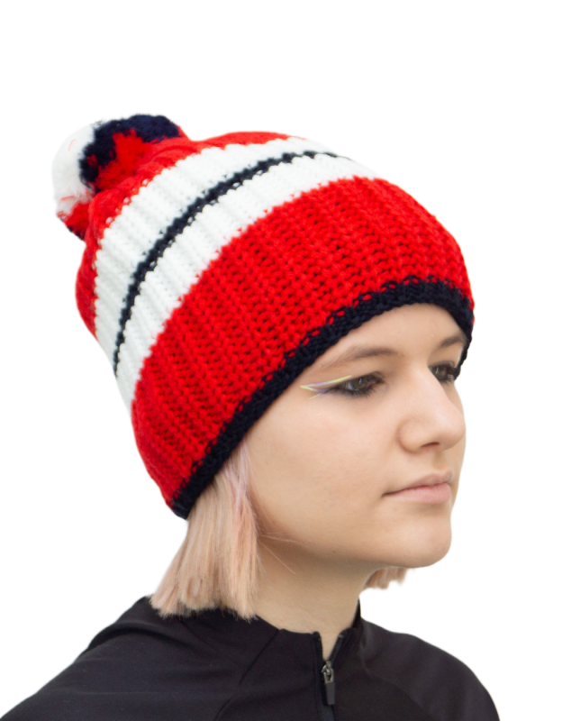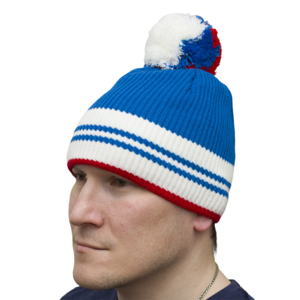 Шапка RAY вязаная Финиш бубон, размер S (54-58), цвет синий/белый/красный