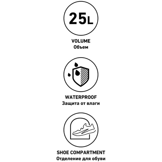 - Молния на главном отсеке открывается в любую сторону, боковой карман для обуви имеет вставку из сетчатого материала для лучшей вентиляции, дно сумки дополнительно защищено поливинилом.