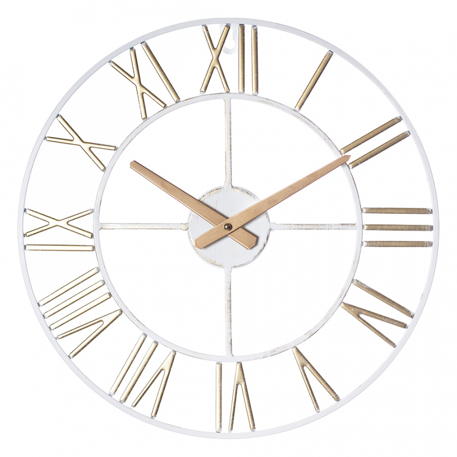 Часы настенные Рубин 4022-003 из металла, d=40 см, белый с золотом "Лофт 3" в магазине Спорт - Пермь