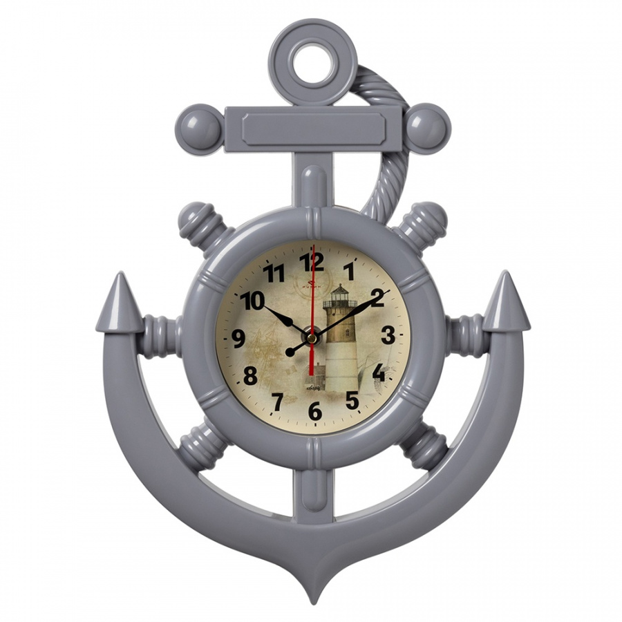 Часы настенные Рубин 3827-006 в форме якоря 27,5х38 см корпус серый "Маяк"