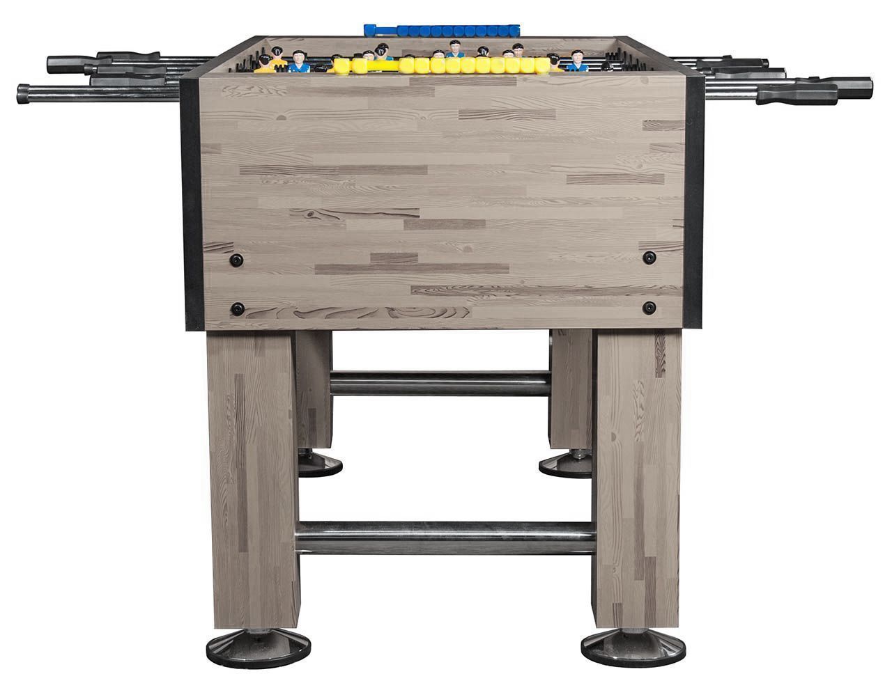 - За счет увеличения толщины бортов и ног, стол приобрел массивность, а значит, стал более устойчив по сравнению с кикером «Champion». Поперечные планки между ногами препятствуют расшатыванию стола во время игры - теперь ничто не помешает Вам нанести точный удар или отдать пас через все поле.