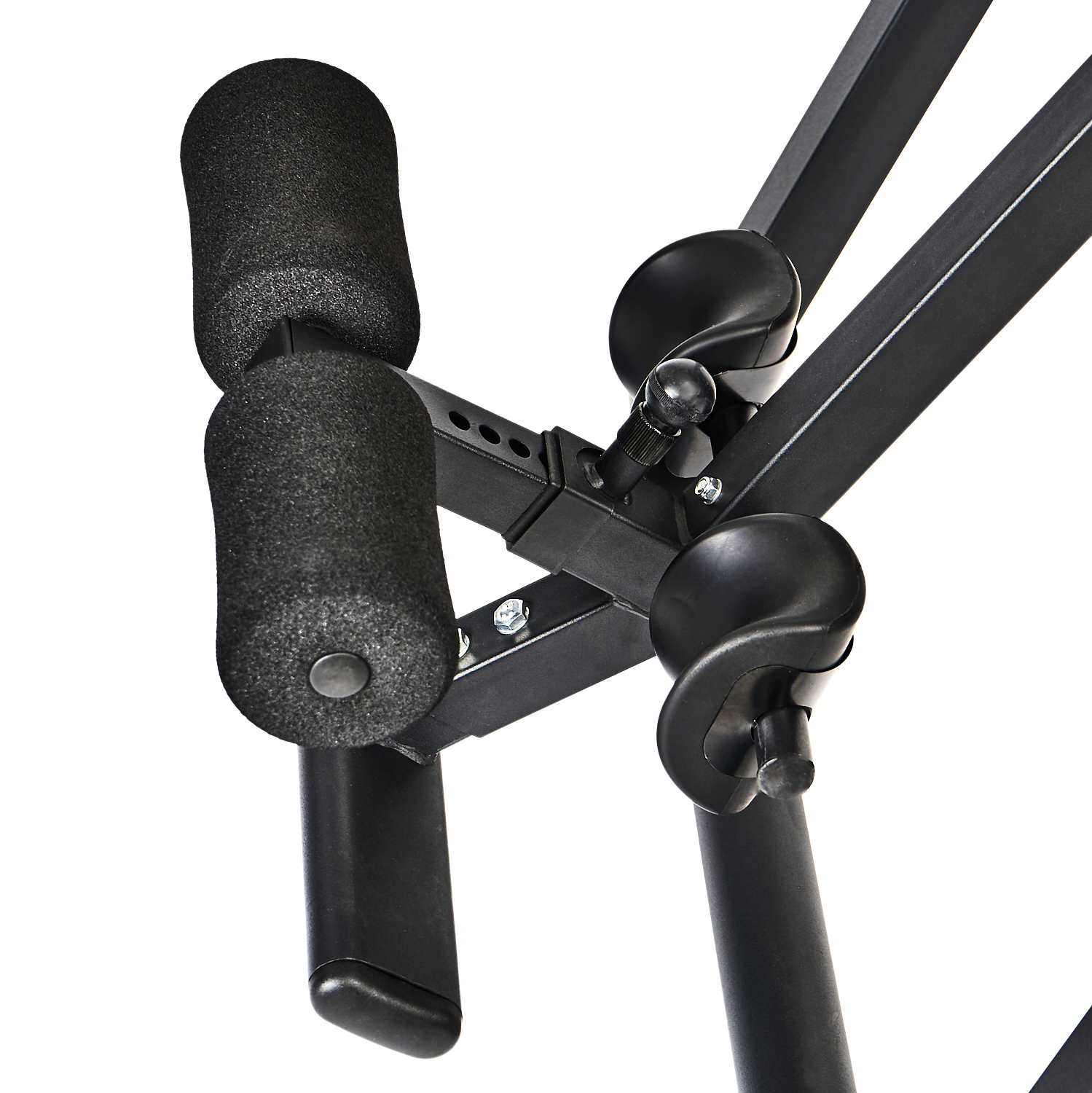 - Модель оснащена мягкой спинкой для комфортной тренировки. Фиксаторы плеч создают дополнительную защиту, и полезны в первую очередь новичкам. Кронштейн с фиксаторами плеч - съемный (крепится на винтах).