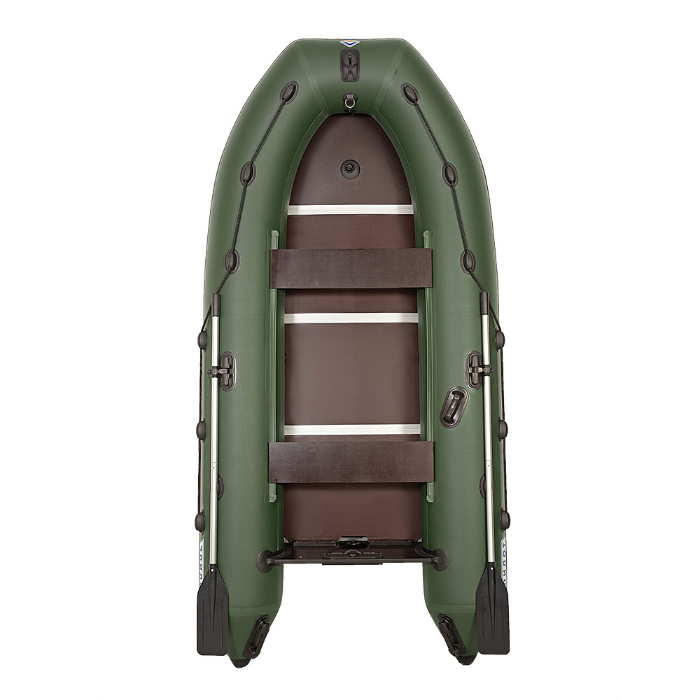 Дополнительный комфорт в использовании вам создадут наружная и внутренняя накладка под мотор на жестоком транце, 3 ручки с намоткой для переноски, ручка шкипера, кольцо для фиксации канистры бензина, привальный брус с отбойником, усиление дна ПВХ профилем шириной 60 мм по баллонам и килю , а так же усиление на баллонах под боковой алюминиевый стрингер.