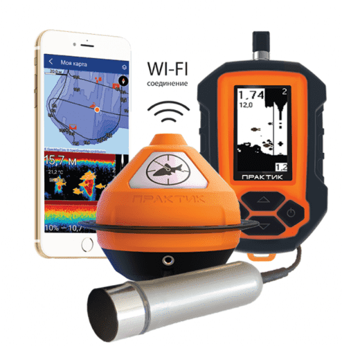 При использовании смартфона сначала необходимо установить на него соответствующее бесплатное программное обеспечение - мобильное приложение "Эхолоты Практик 7" для Android или IOS.