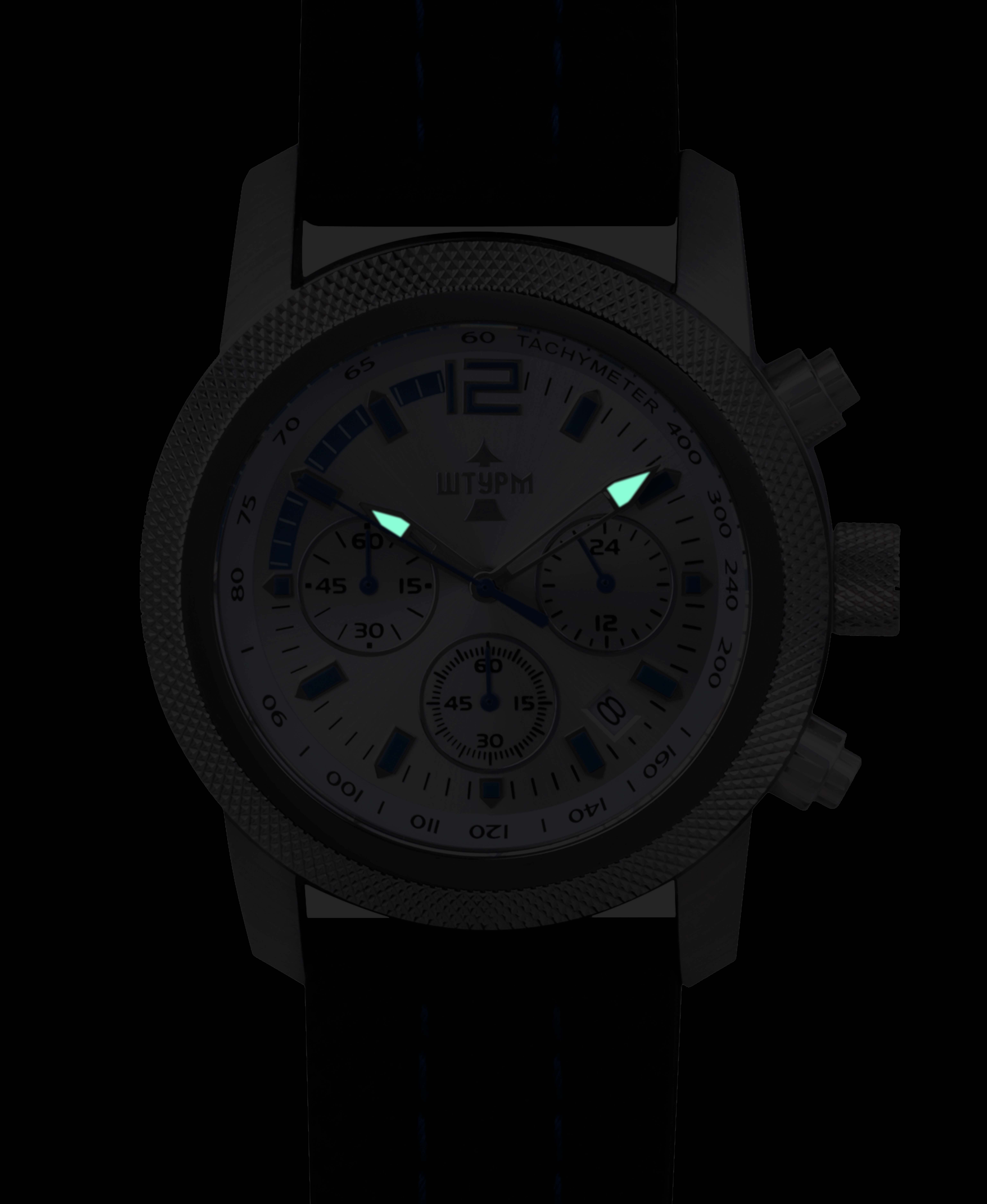 - Дополнительно Люминисцентное покрытие стрелок, Окно даты, Хронограф