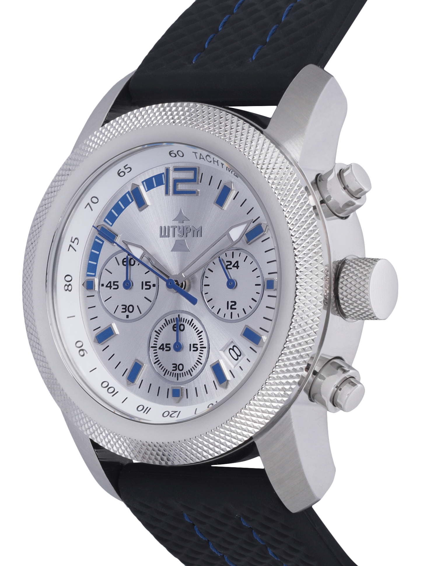 Мужские наручные часы-хронограф с секундомером и тахиметрической шкалой.