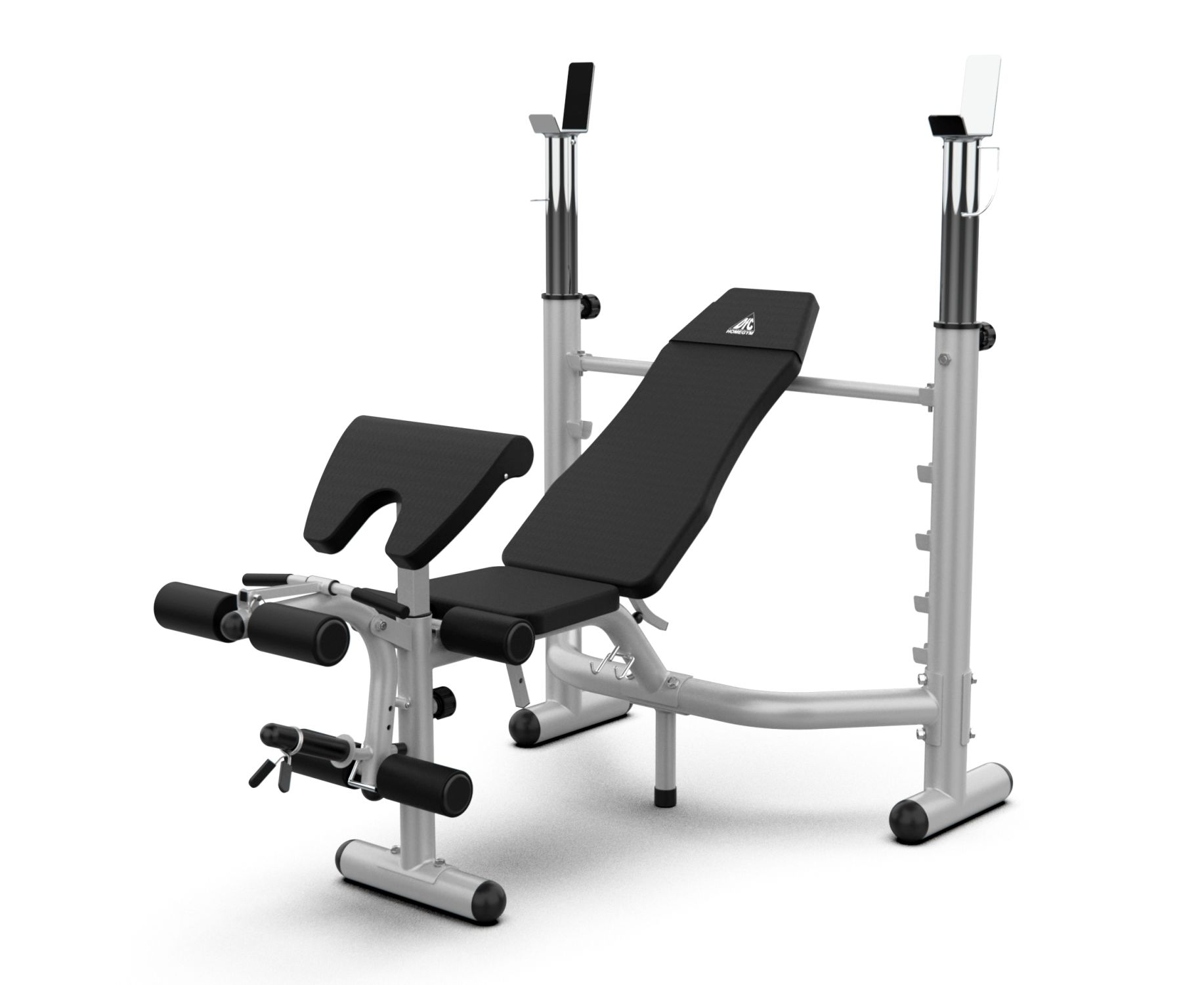 Универсальная скамья со стойками под штангу DFC D748 - самая многофункциональная в линейке.