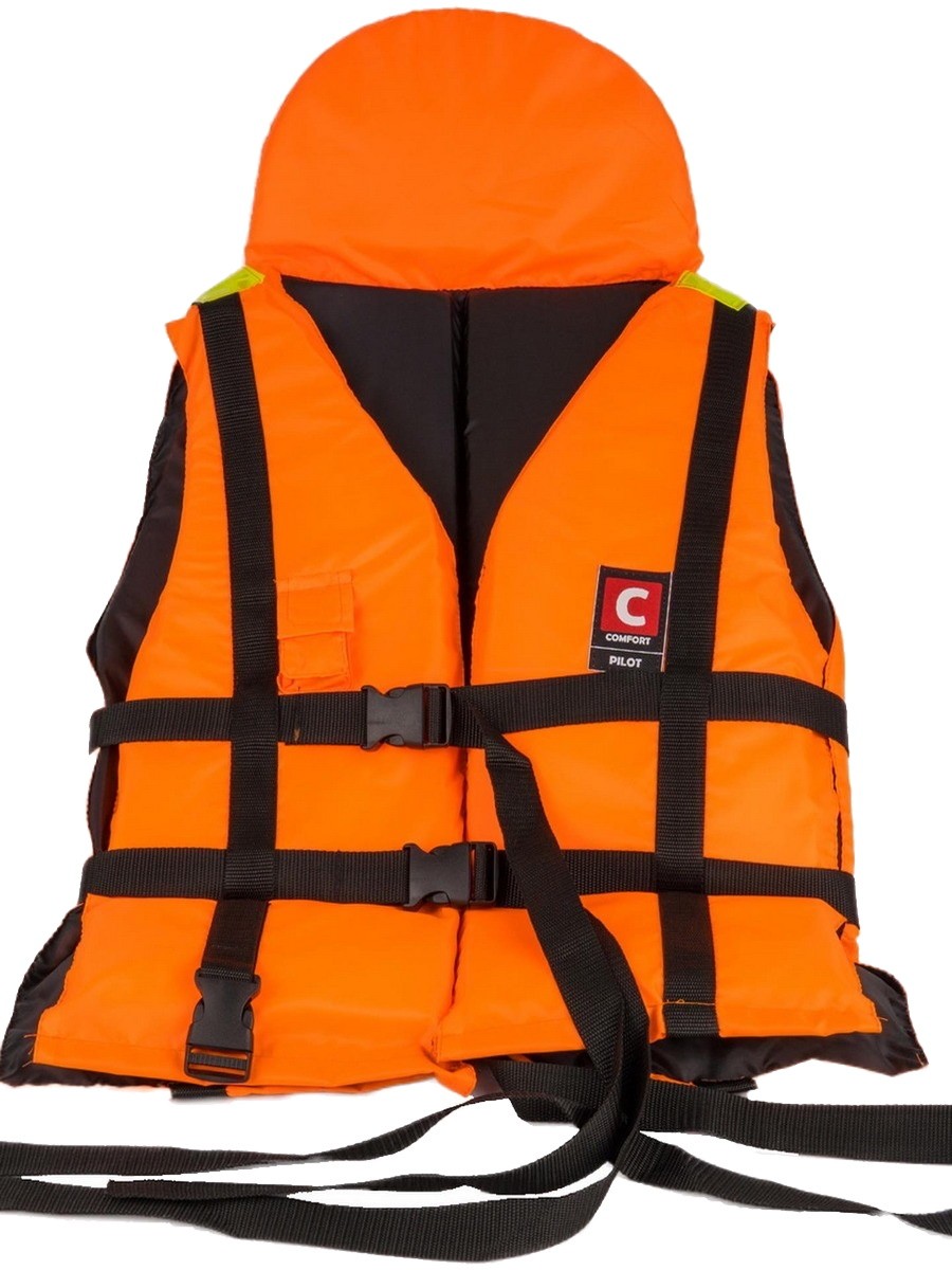 Спасательный жилет Comfort Pilot — это жилет сигнального ярко-оранжевого цвета с универсальной подгонкой размера по фигуре, рассчитан для людей весом от 80 до 120 кг. В плечевой зоне на жилете присутствуют отражающие ленты катафотного типа для лучшего обнаружения человека в темное время суток, свисток для подачи экстренного сигнала о помощи, паховый ремень для надежной фиксации спасательного жилета на теле.