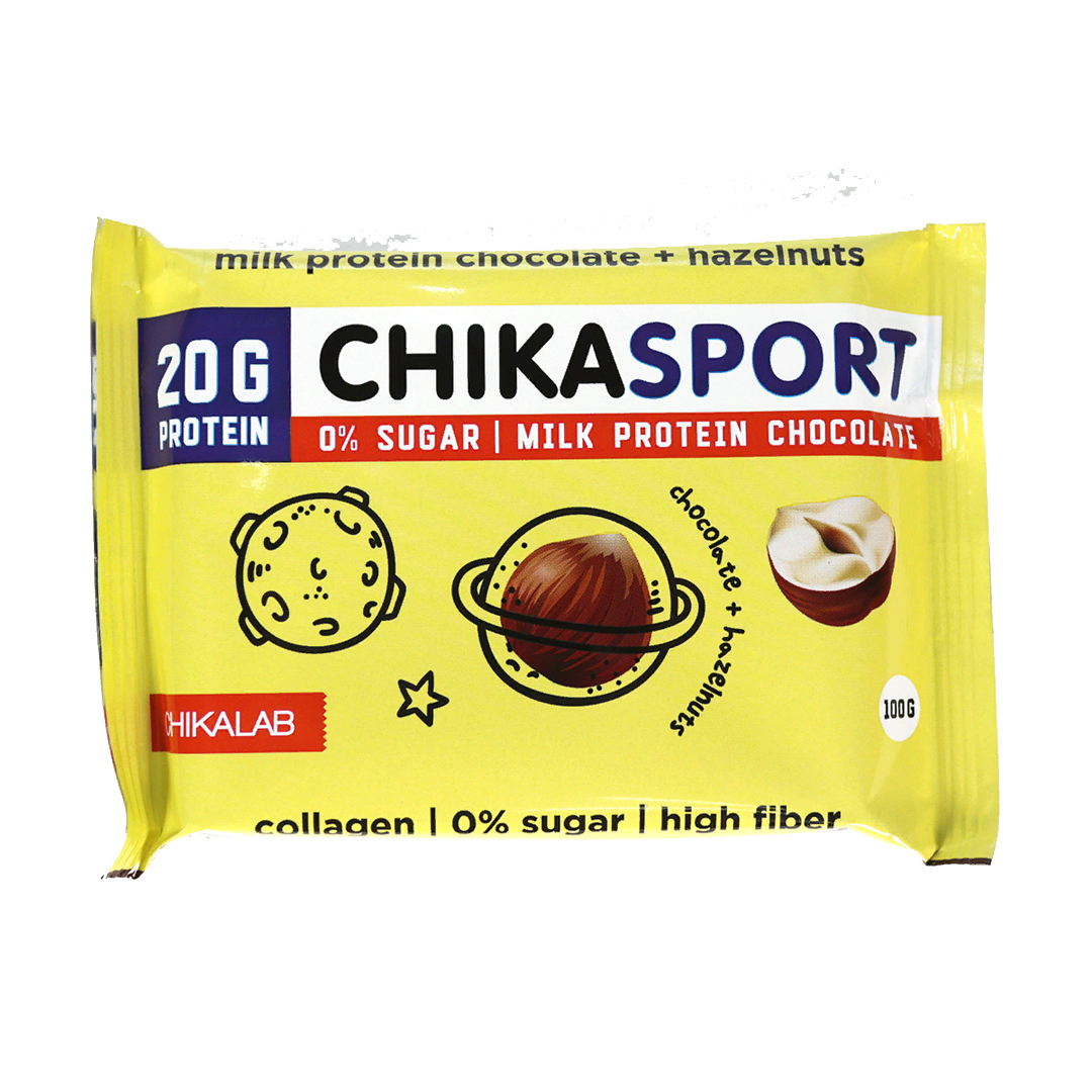 Bombar CHIKALAB - Протеиновый шоколад без сахара - Молочный шоколад с фундуком 100г