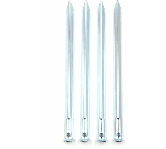 Удобные и надежные колышки изготовлены из нержавеющей стали, имеют заостренный конец, а также отверстие для фиксации шнура.