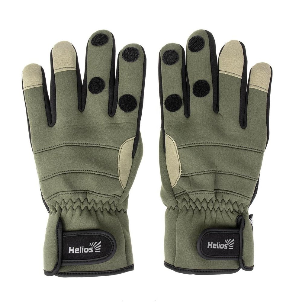 Перчатки рыбацкие FISHER неопрен. на липучке, цв.хаки Helios в Магазине Спорт - Пермь