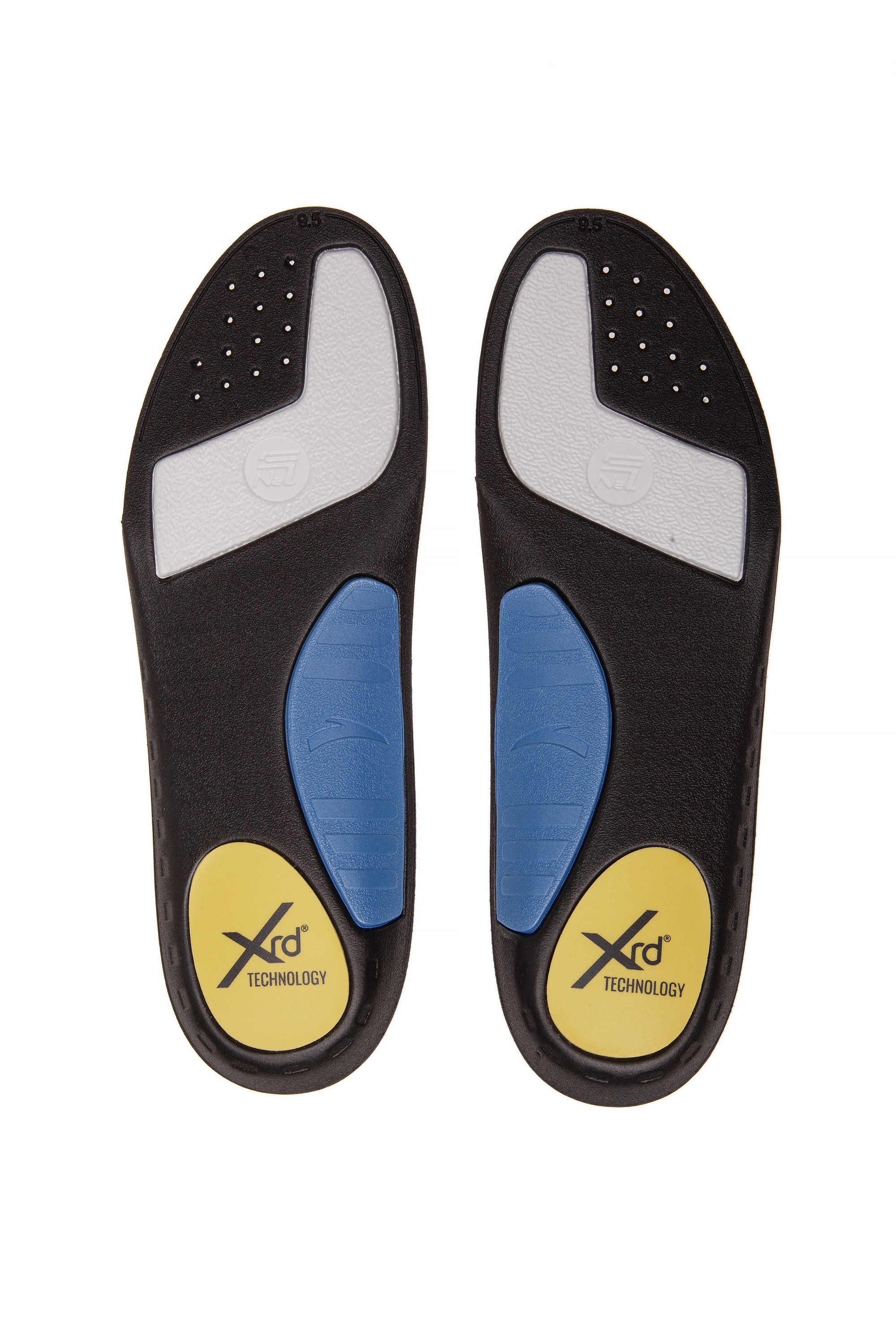 Высокотехнологичные стельки на каждый день идеально подходят для баскетбольных и других видов функциональных тренировок. Верхняя часть стельки выполнена из антибактериального нескользящего материала MICROBAN, обеспечивая свежесть и надежное сцепление. Каркас из термопластичного эластомера (TPE) и вставка из EVA добавляют стабильности при движении. В носочной части расположена вставка из NITROEDGE, которая обеспечивает превосходную амортизацию и возврат энергии. В пяточной зоне находится подушечка PORON XRD, на 30% прочнее гелевой вставки, что эффективно гасит ударные нагрузки при приземлении. Эти стельки увеличивают комфорт во время ходьбы и подходят для ежедневного использования.
