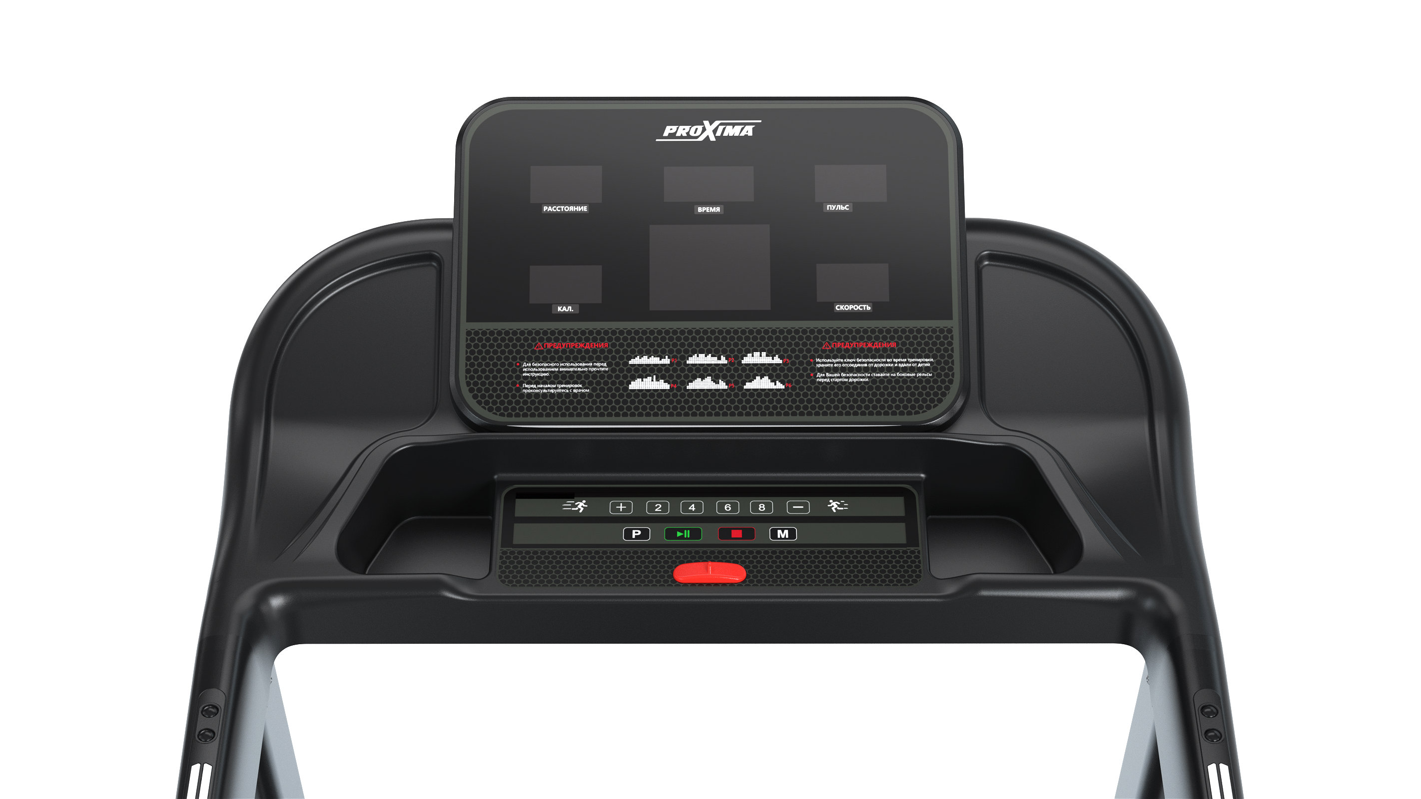 Во время тренировки все ключевые показатели - скорость, время, дистанция, калории, частоту пульса, текущий профиль выводятся на информативный LED дисплей с пятью окошками.