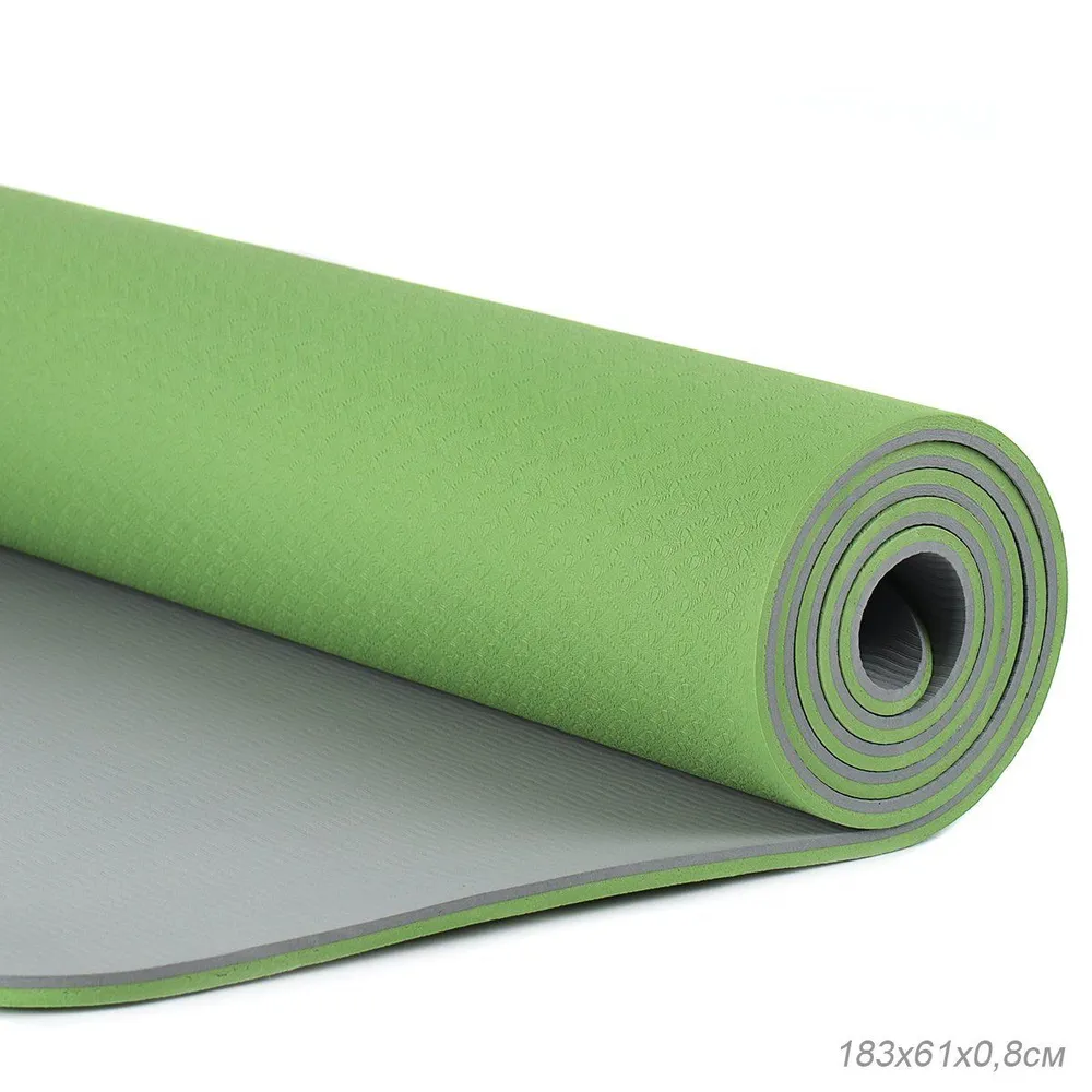 Коврик гимнастический двухслойный YM2-TPE-8, 183х61х0,8, ТРЕ, 8мм, цвета в ассортименте