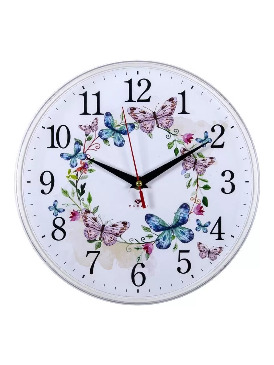 Часы настенные, кварцевые, 25 см, Рубин, Венок из бабочек, 2524-141