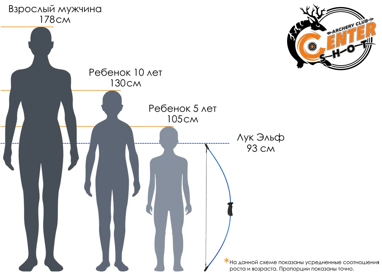 - Длина лука с тетивой: 93 см.