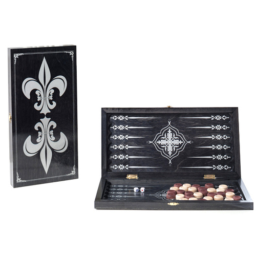 Нарды Объедовская фабрика "Игрушки" малые черные, рисунок серебро "Лилии" (400*200*40)