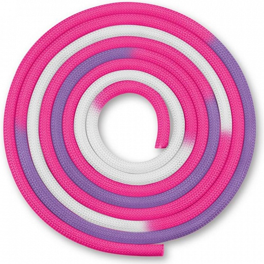 Скакалка для художественной гимнастики утяжеленная трехцветная INDIGO IN369, 3м, 165 г, цвет белый/сиреневый/цикламеновый