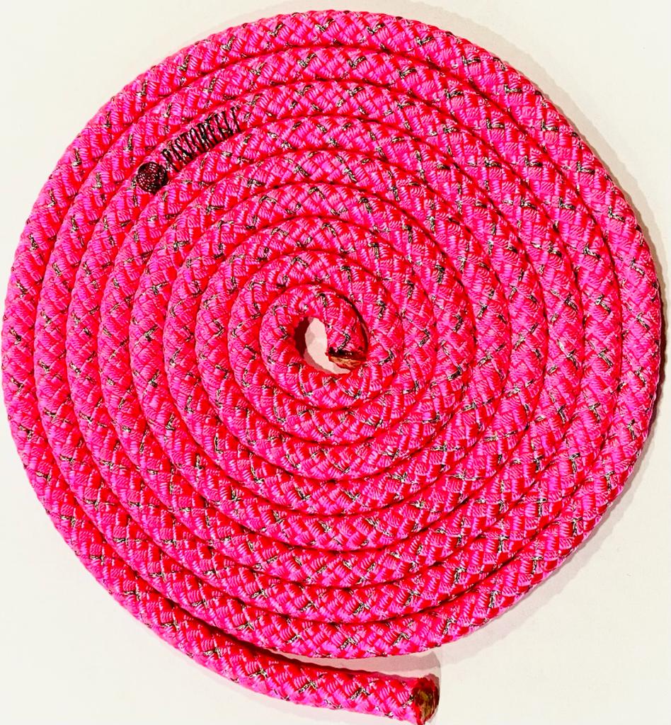 Скакалка гимнастическая PASTORELLI Металлик Розовая флуо с серебряными нитями 00129