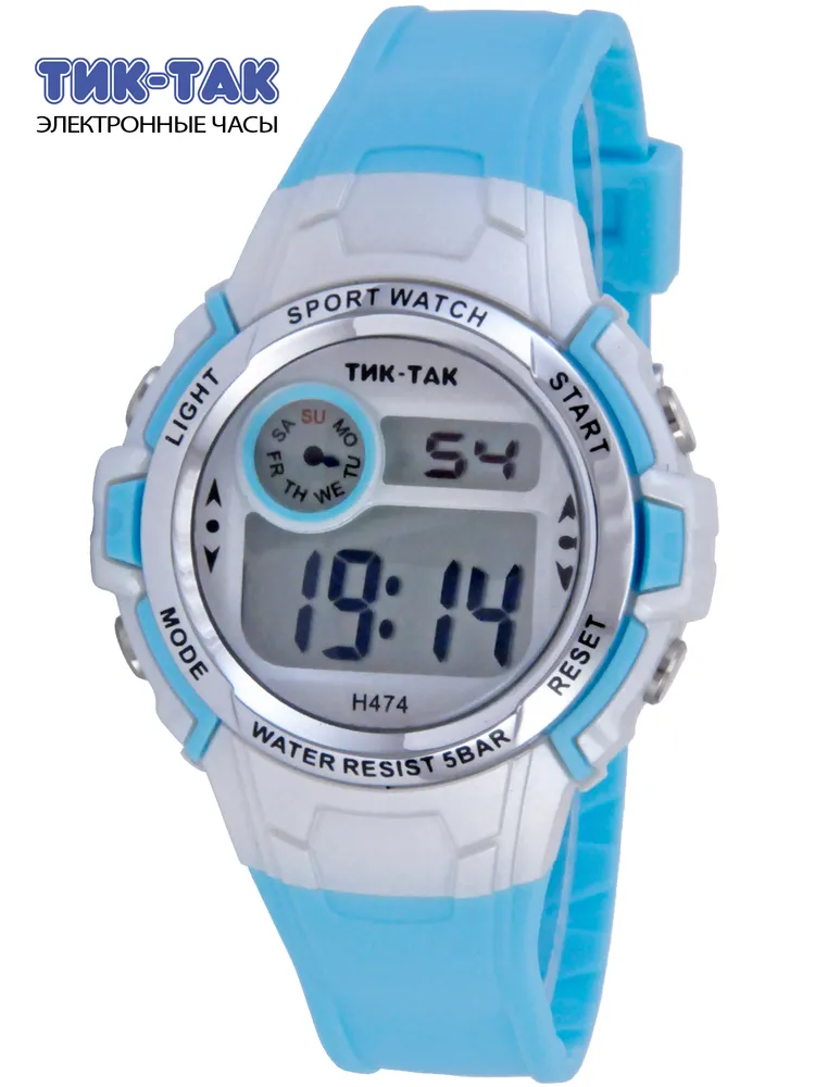Детские электронные часы Тик-Так Н474 голубые с подсветкой, будильником, секундомером