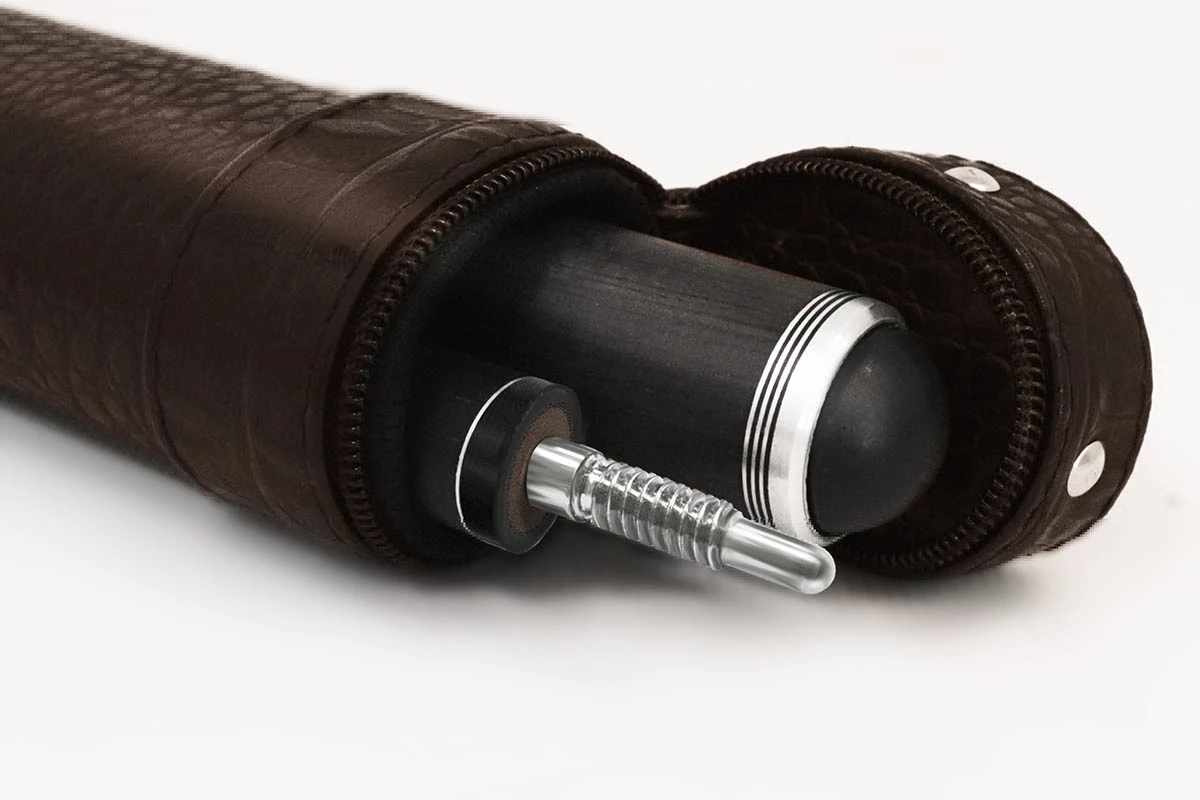 Отделение для кия на застежке "молния" разбито на две части мягкой перегородкой, что позволяет избежать соприкосновения и трения при переноске шафта и турняка. Тубус имеет регулируемый наплечный ремень для переноски и внешний карман для мелких аксессуаров, который можно перемещать по длине тубуса для выбора наиболее комфортного для игрока положения.