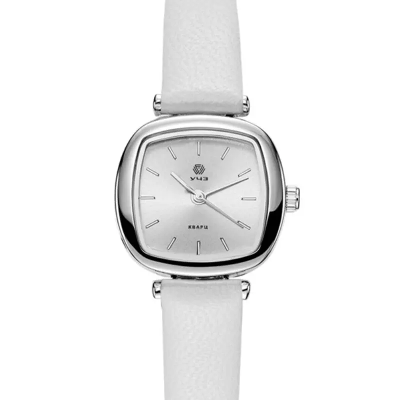 Наручные женские кварцевые часы УЧЗ 1322L-1 серебро белый ремень