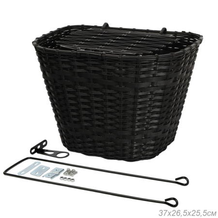 Корзина для велосипеда пластик с крышкой черная с креплением на переднее колесо под резьбовую вилку rронштейн на рулевую колонку. / QY-CRCL-0