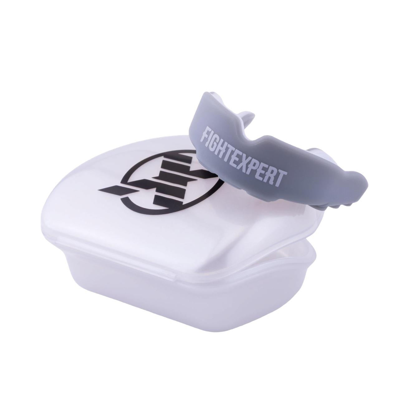 Капа Fight Expert ФКР с футляром, 12+, серо-белая