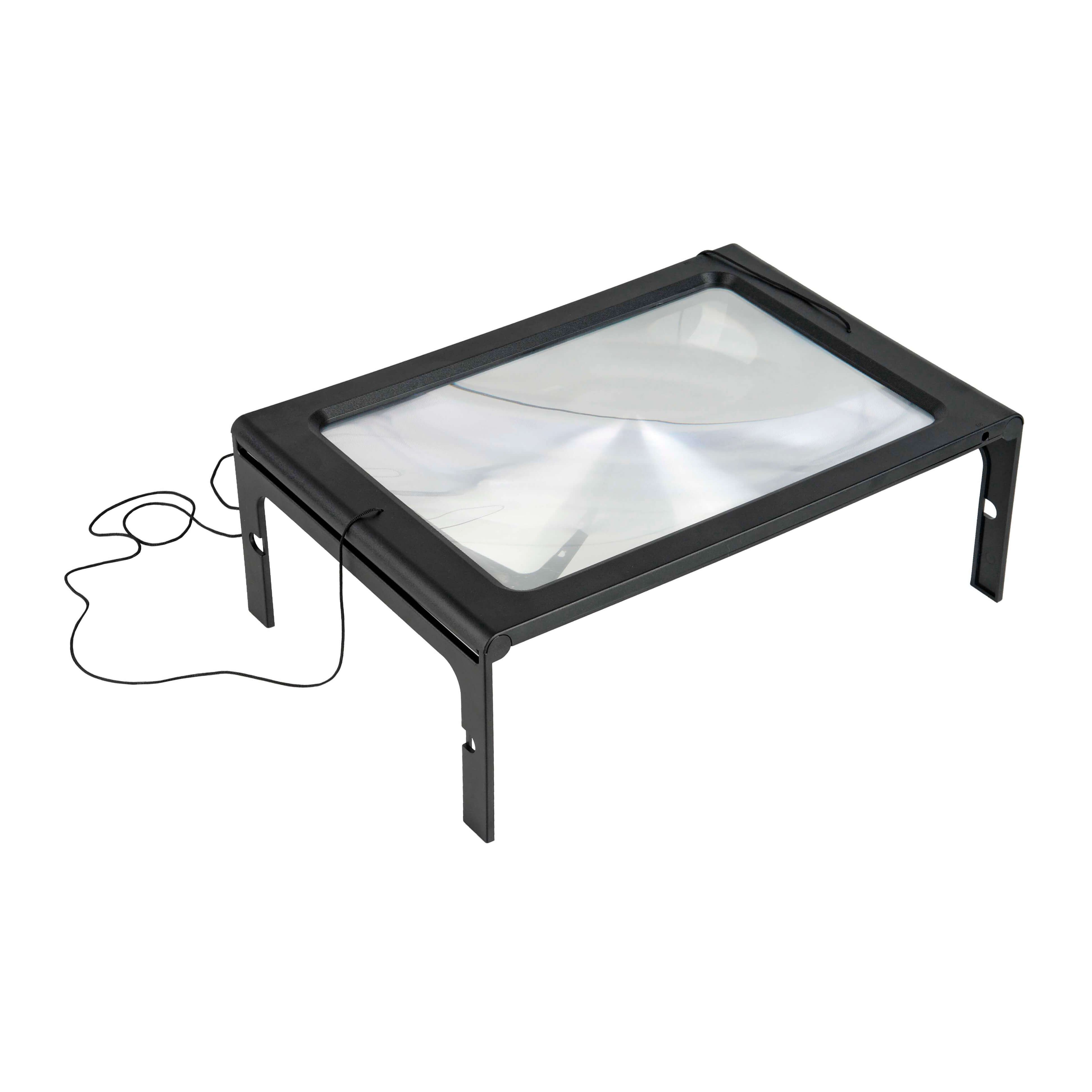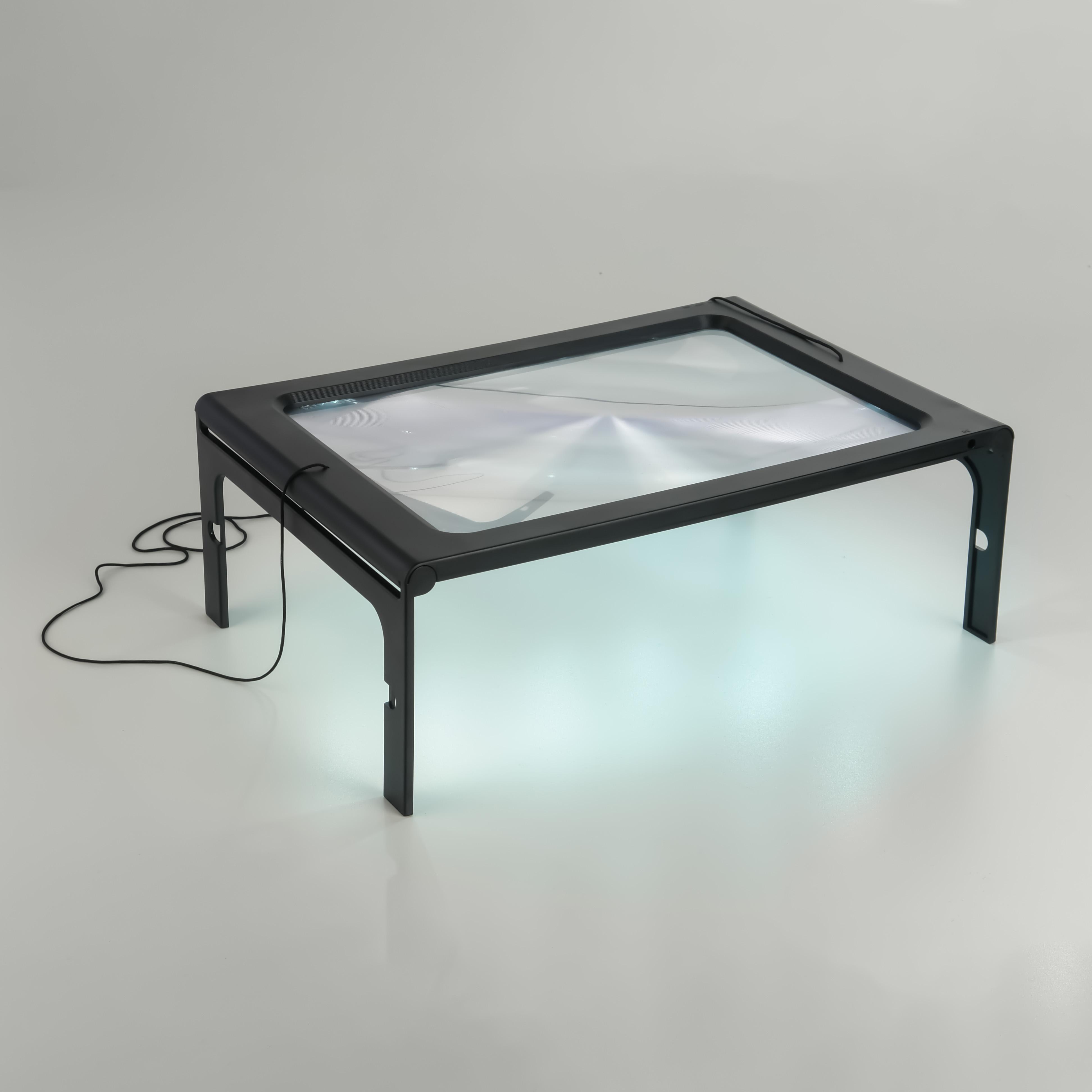 Линза Френеля Veber AM2.5 столик – увеличительное устройство с подсветкой, состоящее из линзы и корпуса со складными ножками и ремешком. Линза размером 240х160 мм имеет увеличение 2,5х.