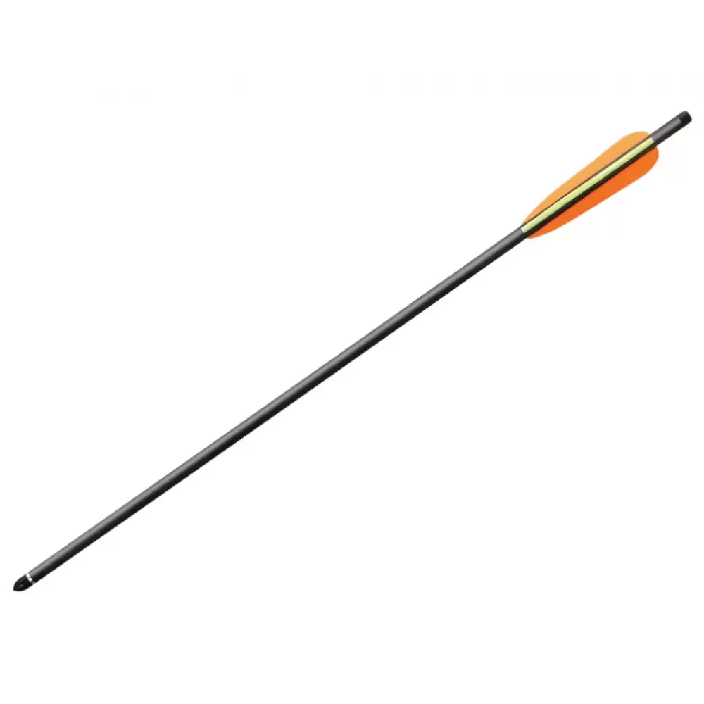 Наконечник арбалетной карбоновой стрелы выполнен в универсальной форме с заостренным концом, изготовлен из металла. Такая конструкция позволяет снаряду лучше проникать в цель за счет острого навершия. Древко производится из прочного карбона, который не подвержен влиянию влаги, что защищает его от коррозии. Конструкция выполнена в форме полой трубки, что также делает вес значительно меньше. Материал отличается прочностью, что увеличивает срок эксплуатации исключая искривление стрел после многократной стрельбы.