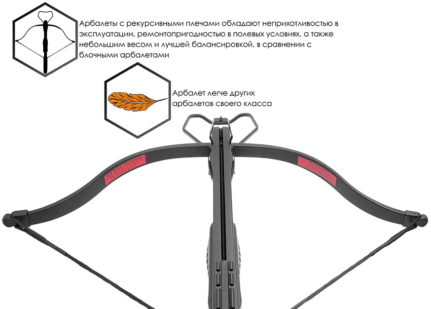 - Классические рекурсивные плечи позволяют легко заменить тетиву в полевых условиях.