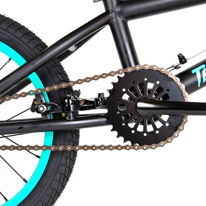 Техника имеет небольшой вес (10 кг), оснащена 16-дюймовыми колесами и аналогичной рамой. Модель обустроена пластиковыми удобными педалями (1/2 дюйма), седлом из эко-кожи, повторяющим анатомические части тела, снимающим напряжение позвоночника, минимизирующим риск травмирования. Безопасность ездока обеспечена профессионализмом, передней и задними клещевыми тормозами, удобной рулевой частью. Удобные прорезиненные грипсы 150 мм, TRP минимизируют риск соскальзывания рук при выполнении трюков.