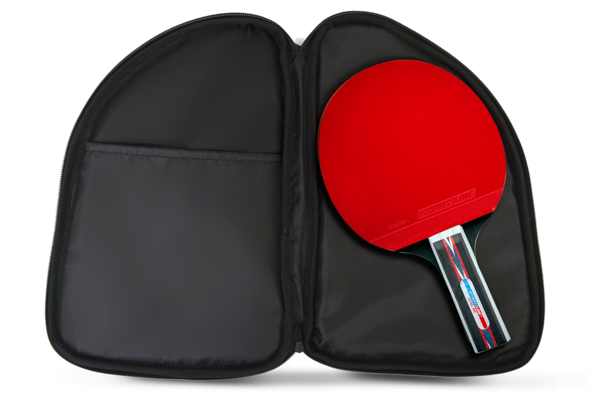 Чехол вмещает одну ракетку и два мяча, имеет универсальный размер и привлекательный дизайн.