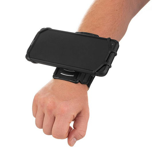 Крепление чехла фиксируется на запястье или предплечье. Телефон, находящийся в держателе, можно повернуть в любое удобное положение.