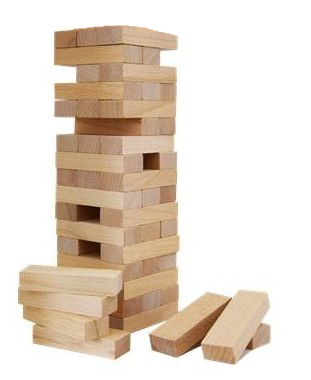 Участников битвы может быть столько, сколько собралось друзей в вашей компании. Каждый игрок выбирает для атаки любой уровень и вытаскивает одной рукой один из брусков! Этот брусок, оказавшийся в руках игрока, укладывается на новый, верхний, этаж сооружения. Все действия выполняются участником так, что бы башня из брусков не рухнула! Виновник катастрофы считается проигравшим! К нему можно применить санкции, которые играющие считают справедливыми, с этим правилом игра будет более напряженной и продолжительной. Если играть без него игра будет более динамичной. Выбирайте подходящий вам вариант. А если в вашей компании собрались сноровистые, внимательные и умные участники – высота вашей башни может вырасти в 2 раза!