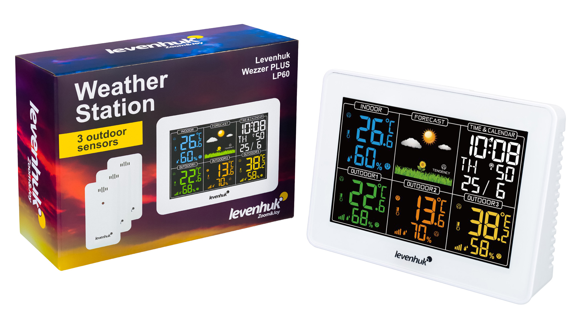 Метеостанция Levenhuk Wezzer PLUS LP60 – компактный гаджет для дома, офиса или загородного участка. Со станцией поставляются три внешних датчика, что позволяет быть в курсе погодных изменений сразу в четырех зонах. Метеостанция поможет поддерживать оптимальный микроклимат в жилых и хозяйственных помещениях и своевременно узнавать о приближающемся ненастье. Основной блок можно разместить на столе или подоконнике, а датчики оснащены настенными креплениями.