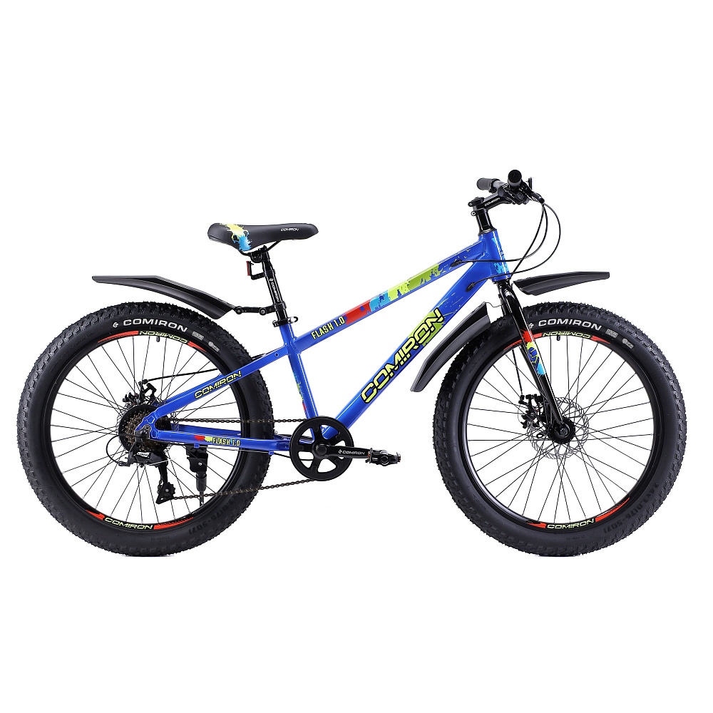 Велосипед COMIRON FLASH, 24"x3.0, (рама 13), 7 скоростей, цвет полуфэт ригид синий