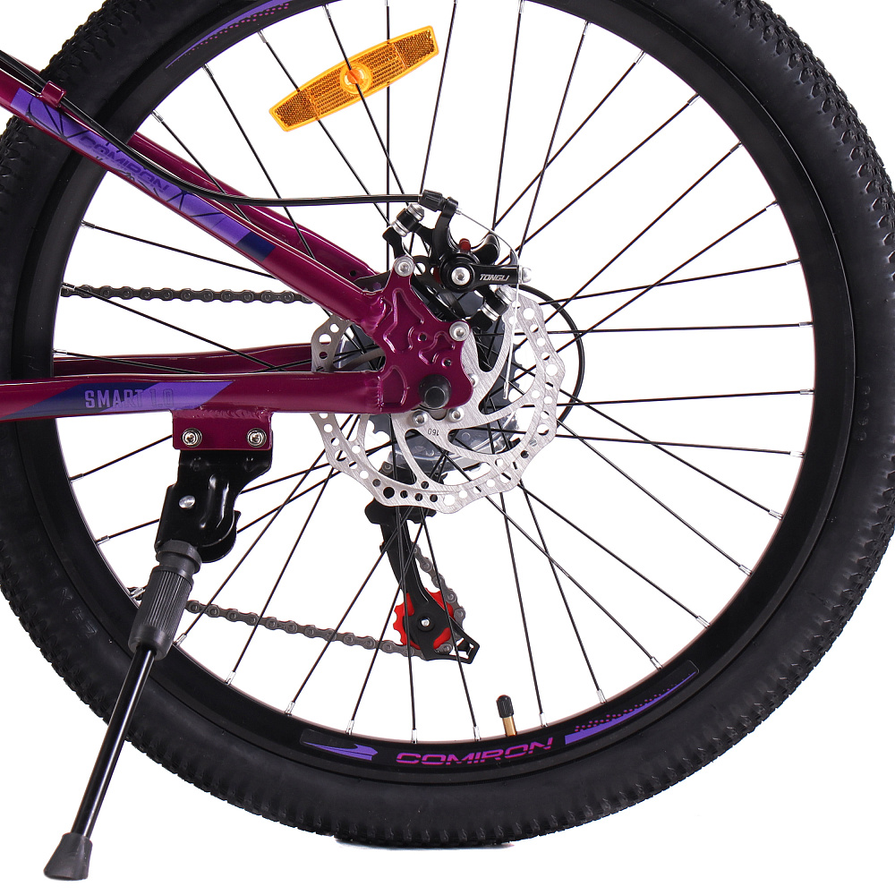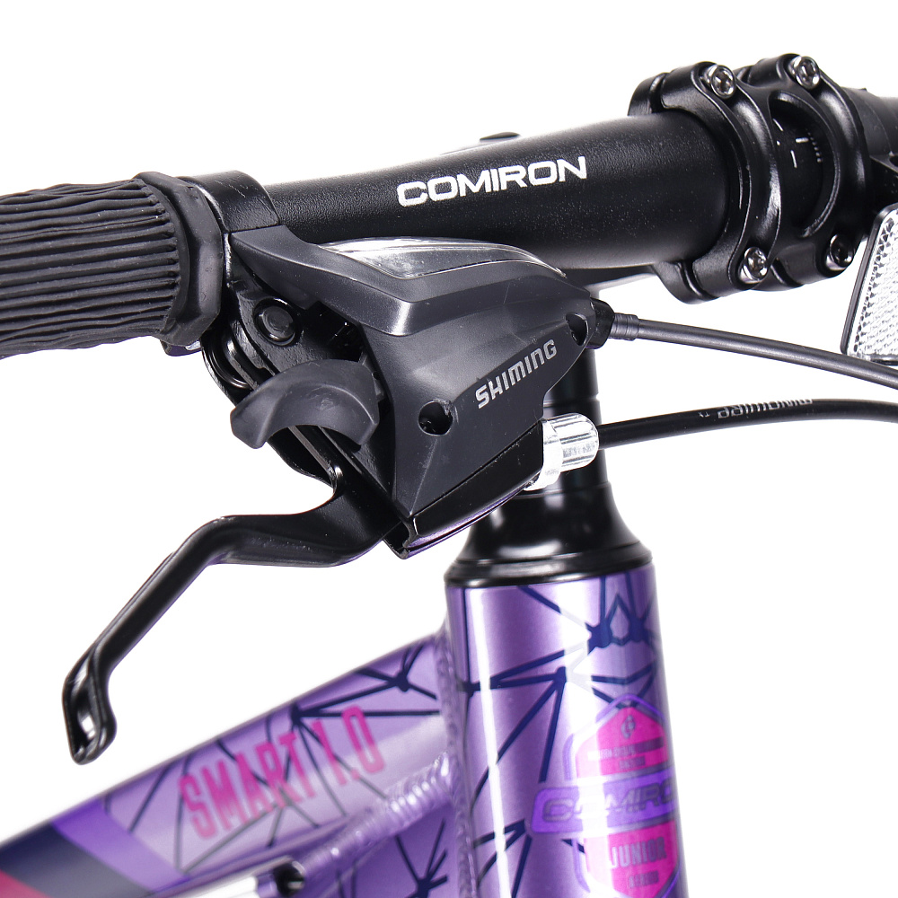 Велосипед COMIRON SMART 24”– комфортный детский велосипед с заниженной алюминиевой рамой, 7-скоростной трансмиссией, амортизационной вилкой, дисковыми тормозами, внутренней проводкой тросов, крыльями и подножкой в комплекте.