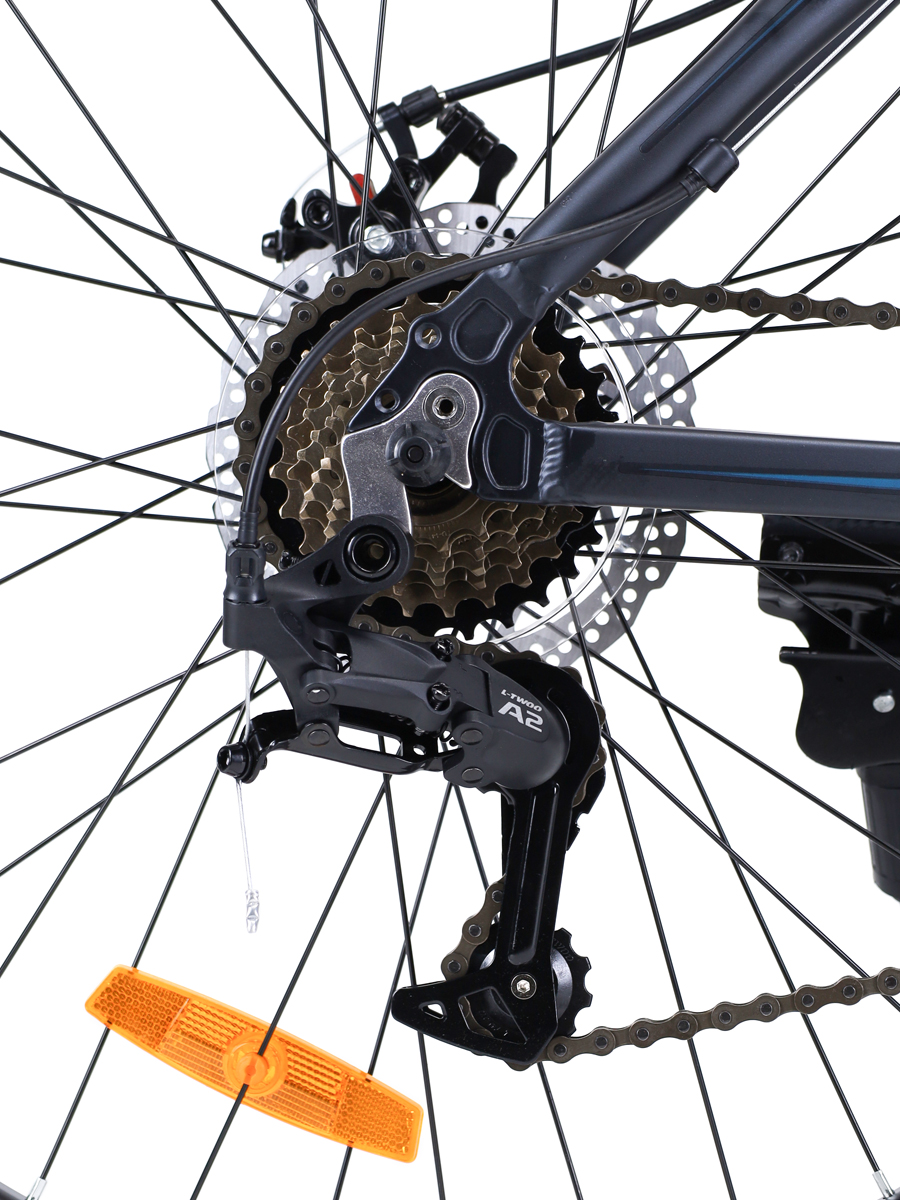 - Трансмиссия 3х7 (21 скорость): Легкость переключения передач позволяет легко адаптироваться к любым условиям — от ровных городских улиц до сложных пересеченных и даже горных маршрутов.