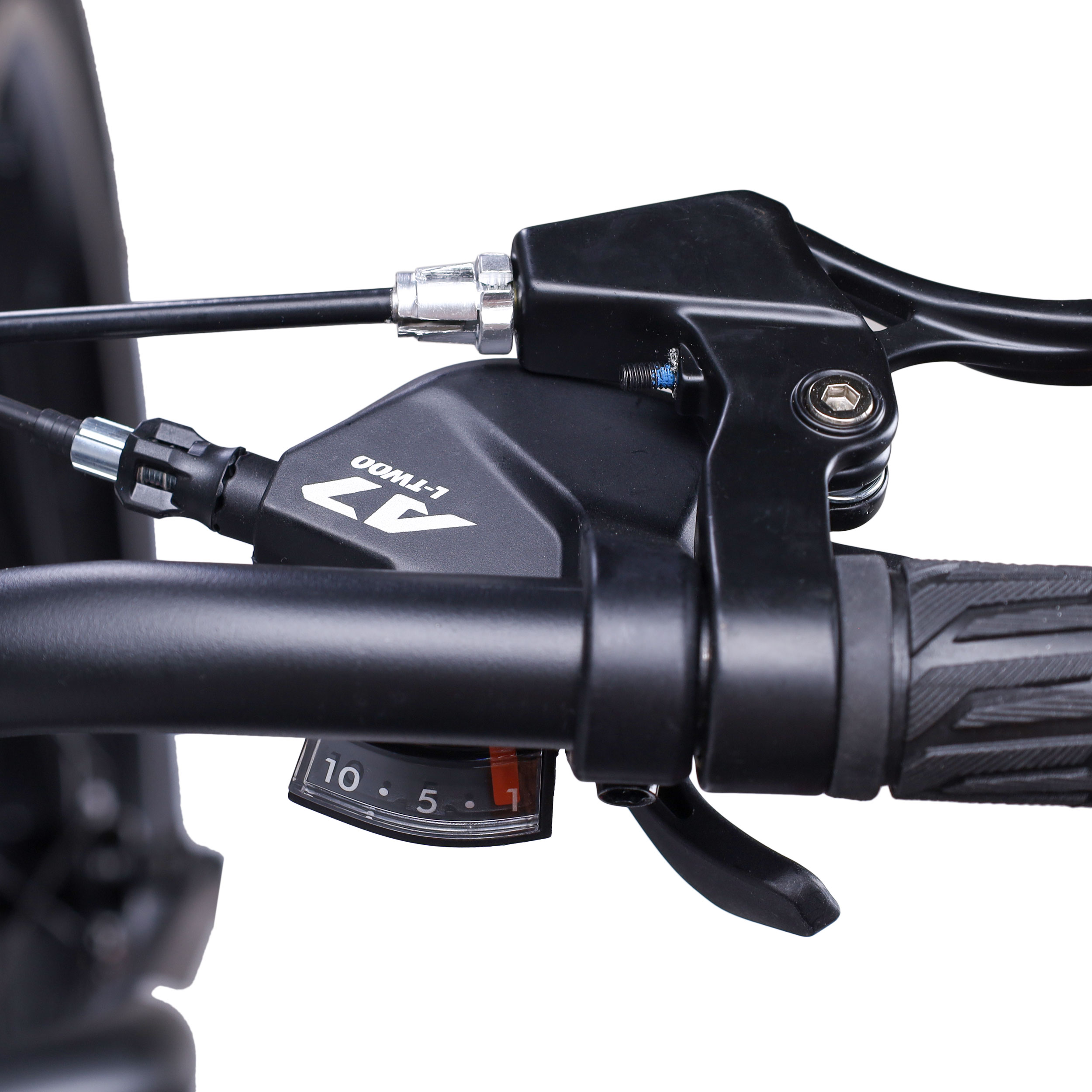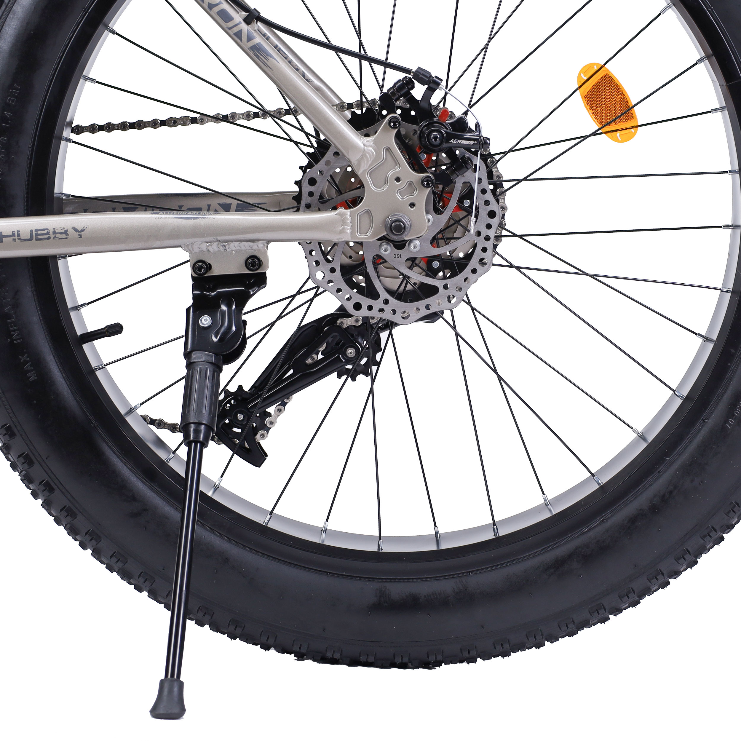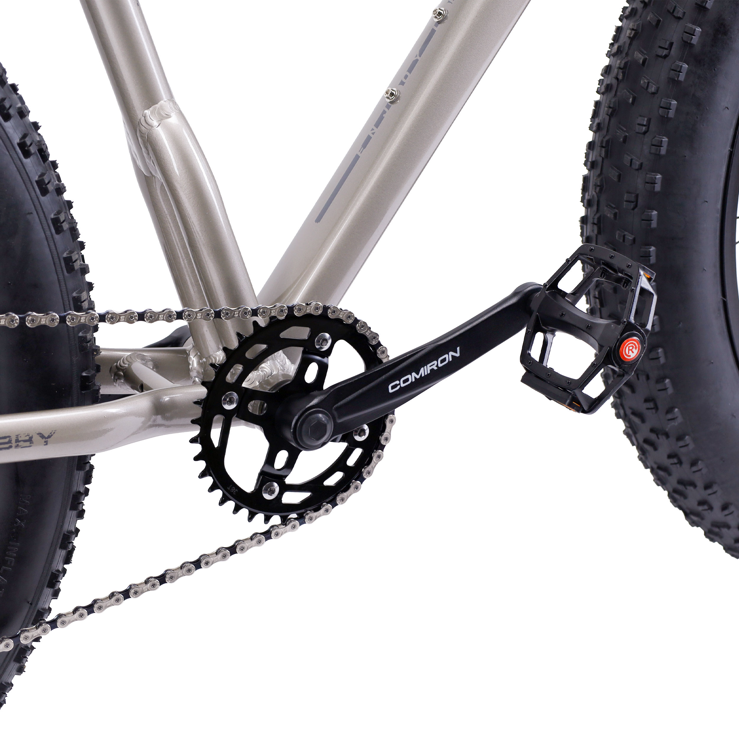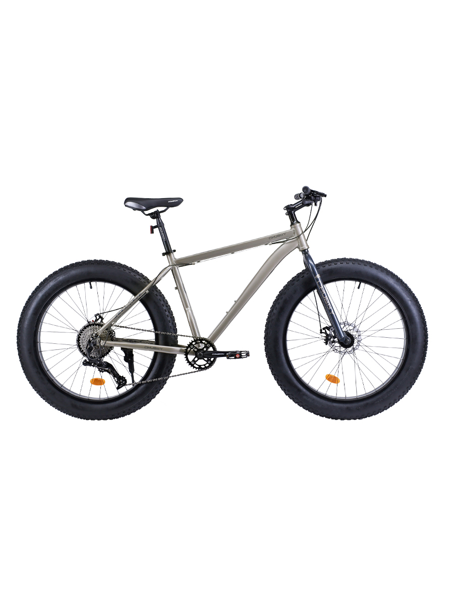 Широкие покрышки 4", благодаря высокой проходимости, позволяют ездить по любым дорогам и летом, и даже зимой. Облегчённая трансмиссия 1*10sp с кассетой 11-42T позволяет легко крутить педали, даже в серъёзную гору.
