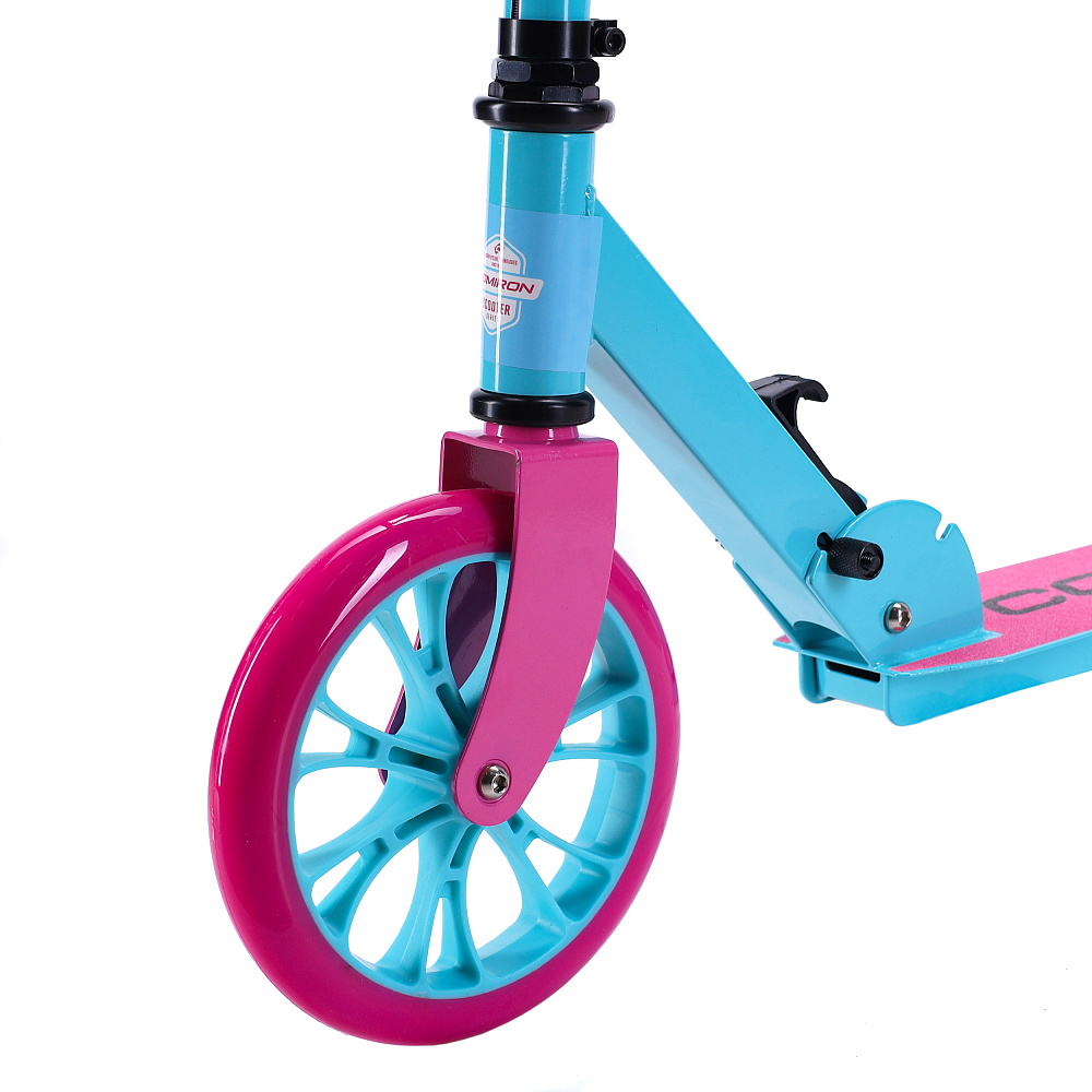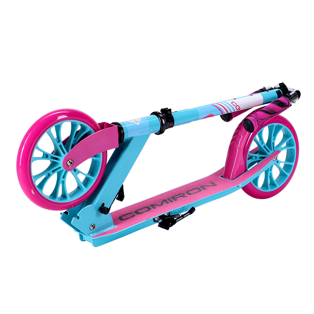 Самокат 2-х колесный городской COMIRON GT23 с колёсами 200 мм, увеличенной грузоподъёмностью до 80 кг, складной усиленной конструкцией, с подножкой, на улучшенных подшипниках в колёсах, в оригинальном дизайне от дизайнерского бюро COMIRON Sport