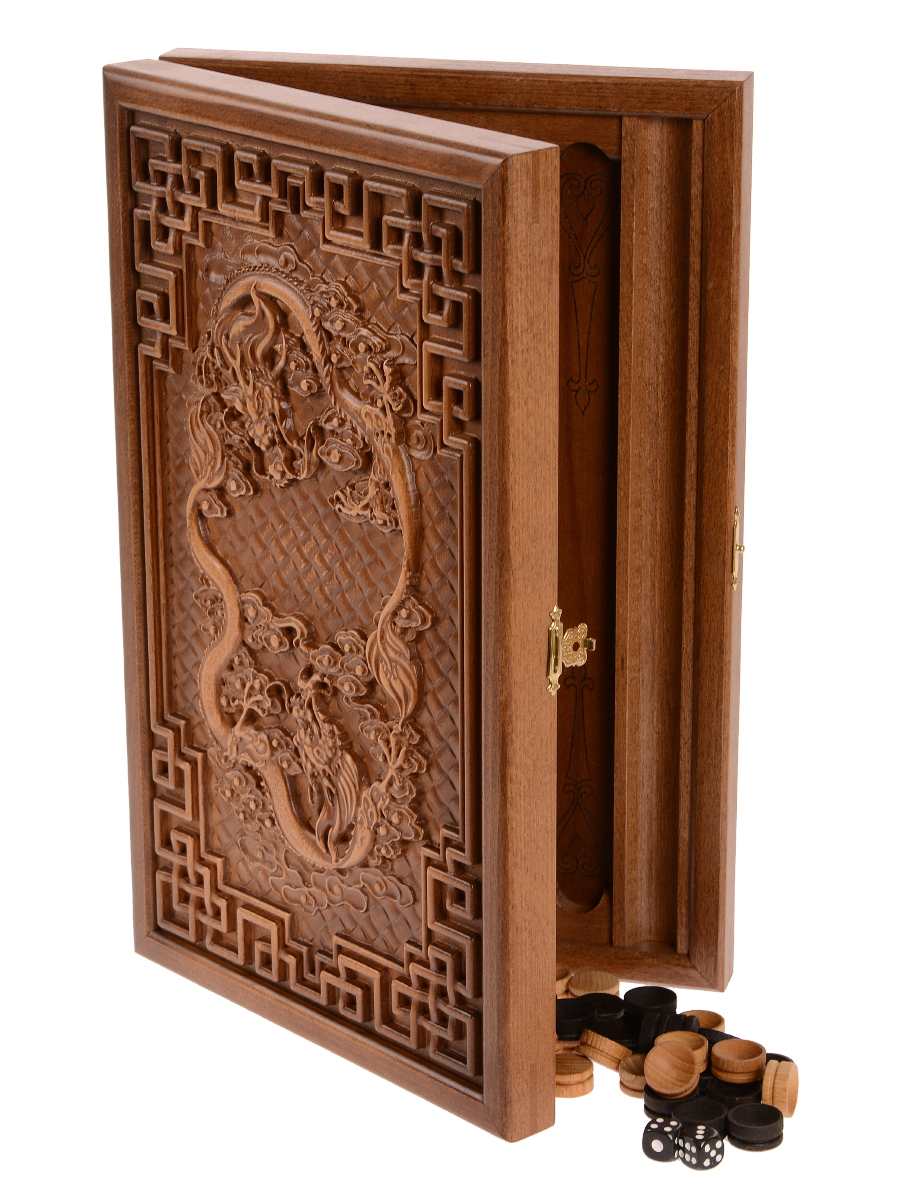 Нарды Объедовская фабрика «Игрушки» большие черные, рисунок золото "Водный дракон" (600*300*40)