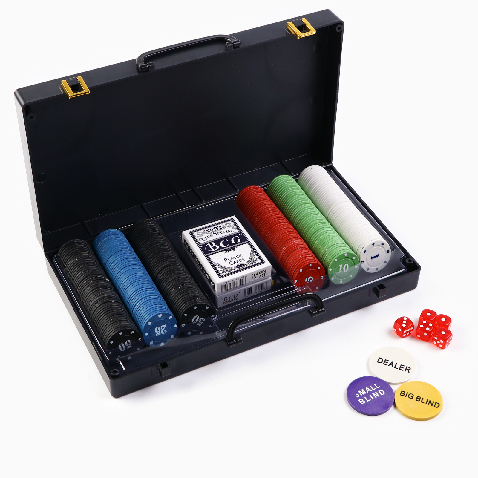 Набор для игры в покер "Время игры", 300 фишек, 2 колоды карт, 5 кубиков, артикул 9911694