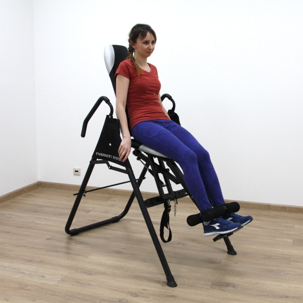 - На данной модели инверсионного стола предусмотрен выбор режима инверсии (с помощью ремня и стержня): легкий (угол до 22 гр), средний (угол от 22 до 55 гр), профессиональный (от 55 гр).