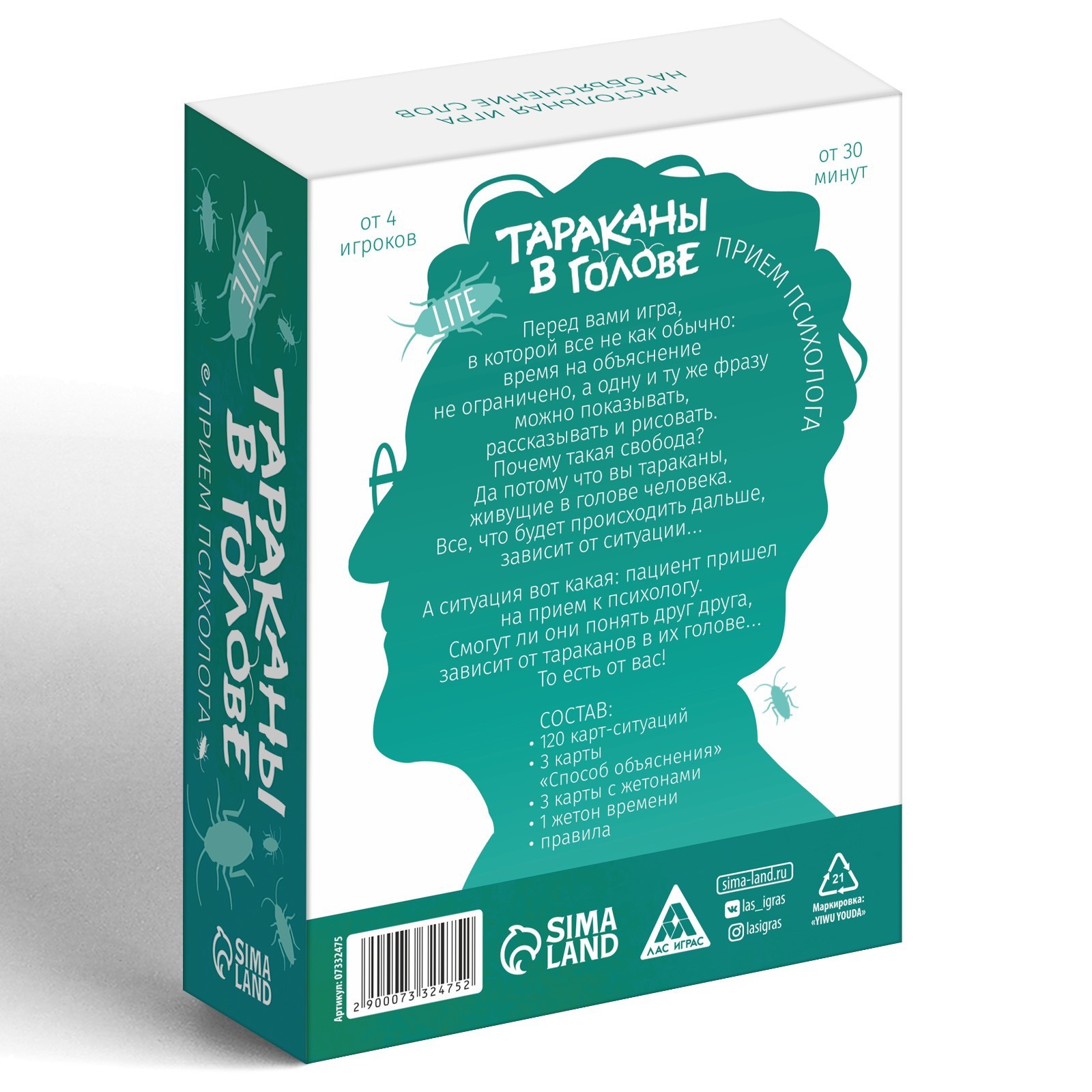 Перед вами игра, в которой всё не как обычно: время на объяснение не ограничено, а одну и ту же фразу можно показывать, рассказывать и рисовать. Почему такая свобода? Да потому что вы — тараканы, живущие в голове человека. Всё, что будет происходить дальше, зависит от ситуации. А ситуация вот какая: пациент пришёл на приём к психологу. Смогут ли они понять друг друга — зависит от тараканов в их голове… то есть от вас!