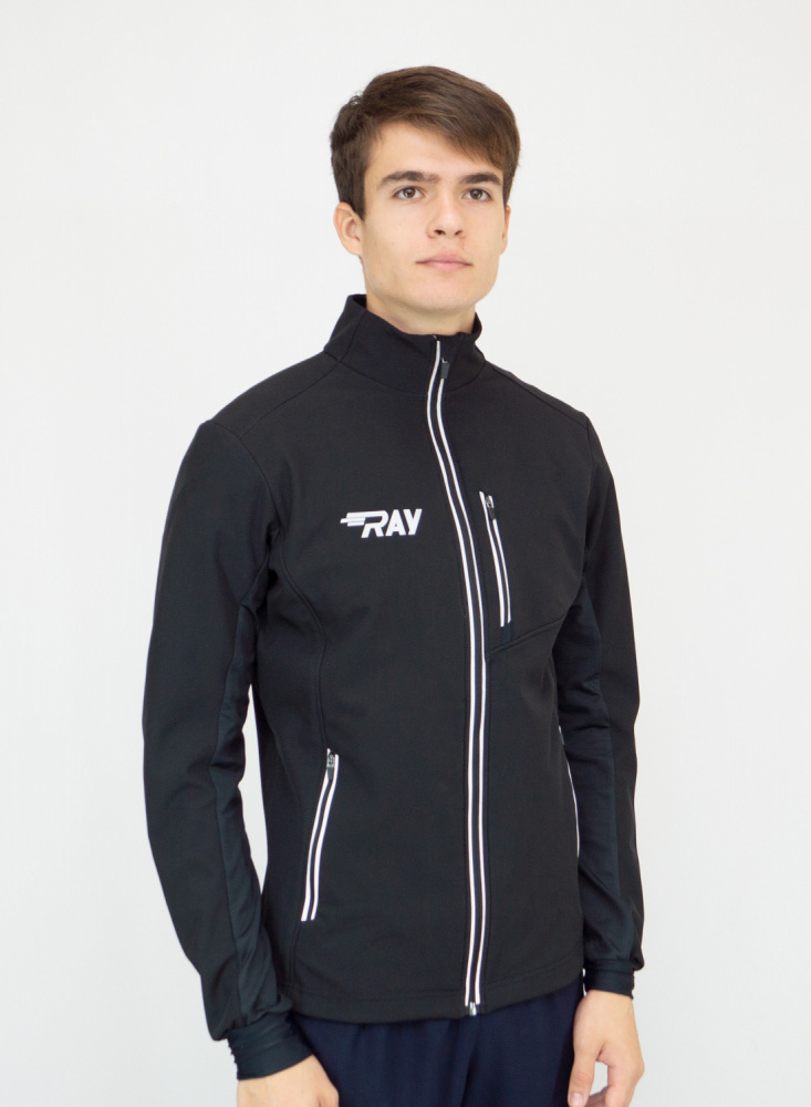 Куртка разминочная RAY WS NEO (MEN) на флисе, черная, молния светоотражающая