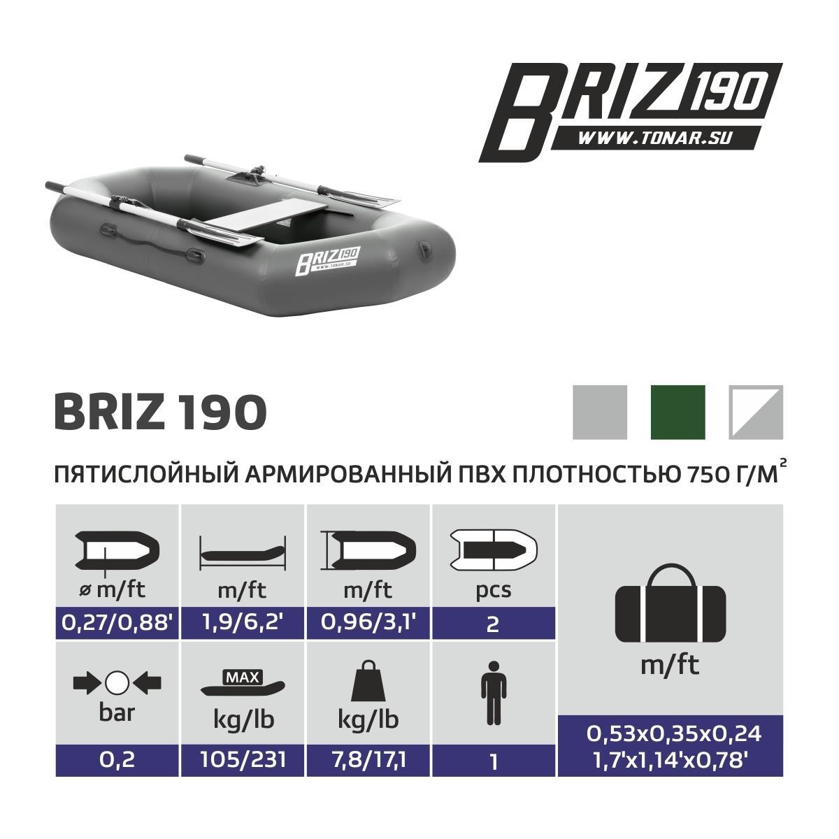 Лодка гребная Тонар Бриз 190 (с веслами), цвета в ассортименте