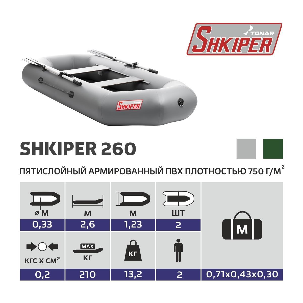 Лодка гребная Тонар Шкипер 260, цвета в ассортименте